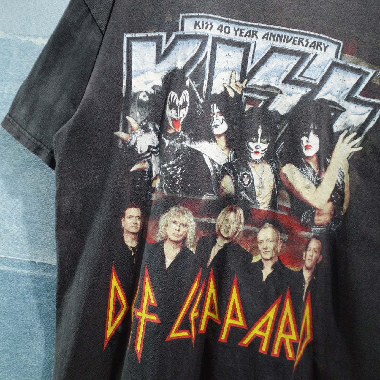 Mexico製 US古着 KISS 40YEAR ANNIVERSARY KISS × DEF LEPPARD TOUR2014 バンドTシャツ XL