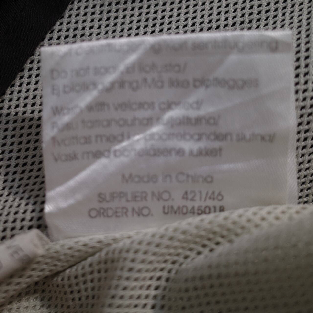 インナー裾ファスナー部分ほつれ。