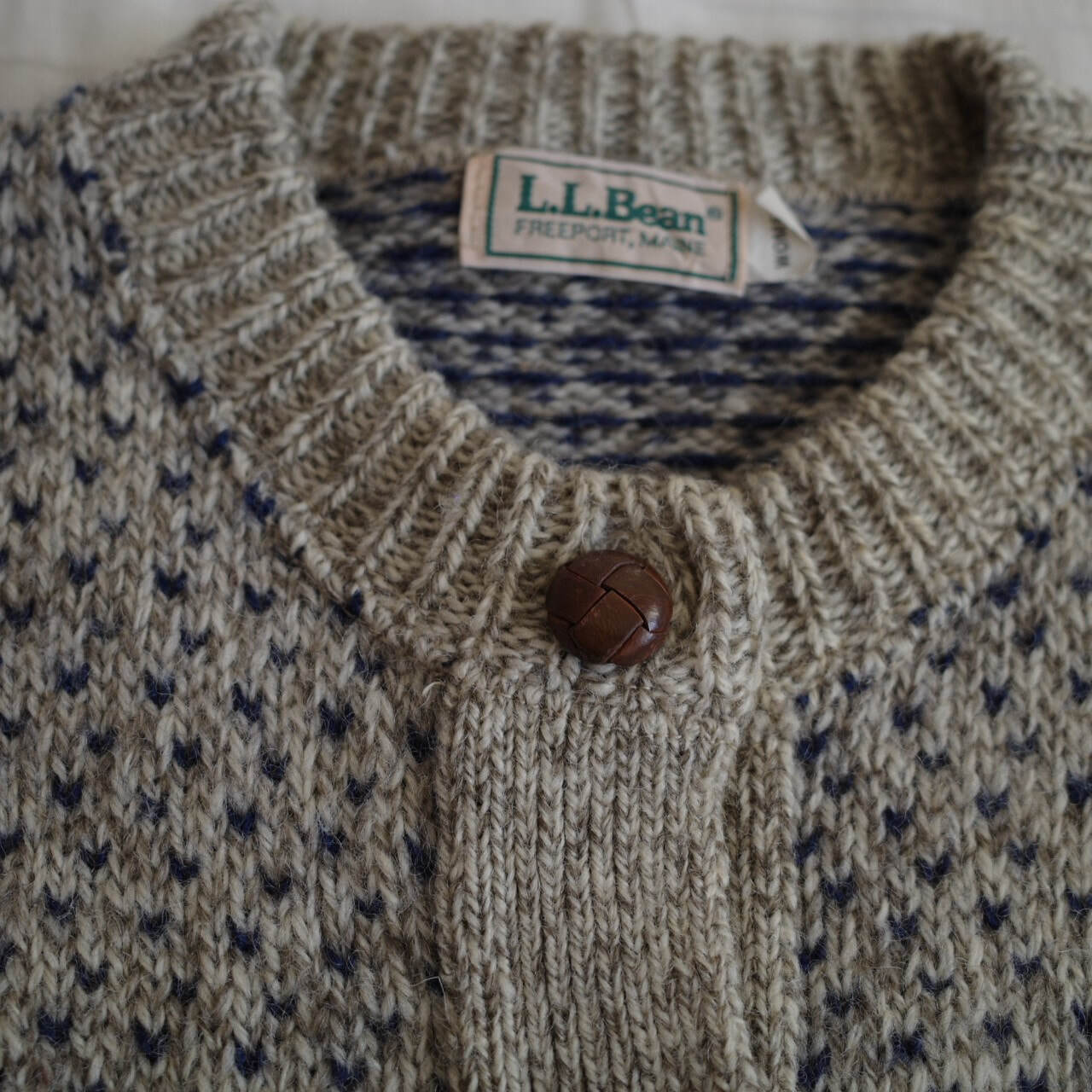 80s ヴィンテージ 古着 L.L.Bean エルエルビーン バーズアイ ニット カーディガン セーター 80年代 在原みゆ紀 くるみボタン vintage ビンテージ